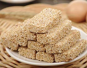 米花酥是一种著名的传统小吃,又名米花糖、米子糖、炒米糖,其制作工艺从明代传承至今已有几百年的历史,其产品颗粒均匀,状如蜂蛹、软硬适中、甜中裹香。