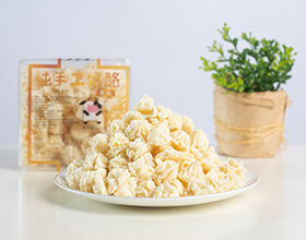 米花酥是一种著名的传统小吃,又名米花糖、米子糖、炒米糖,其制作工艺从明代传承至今已有几百年的历史,其产品颗粒均匀,状如蜂蛹、软硬适中、甜中裹香。